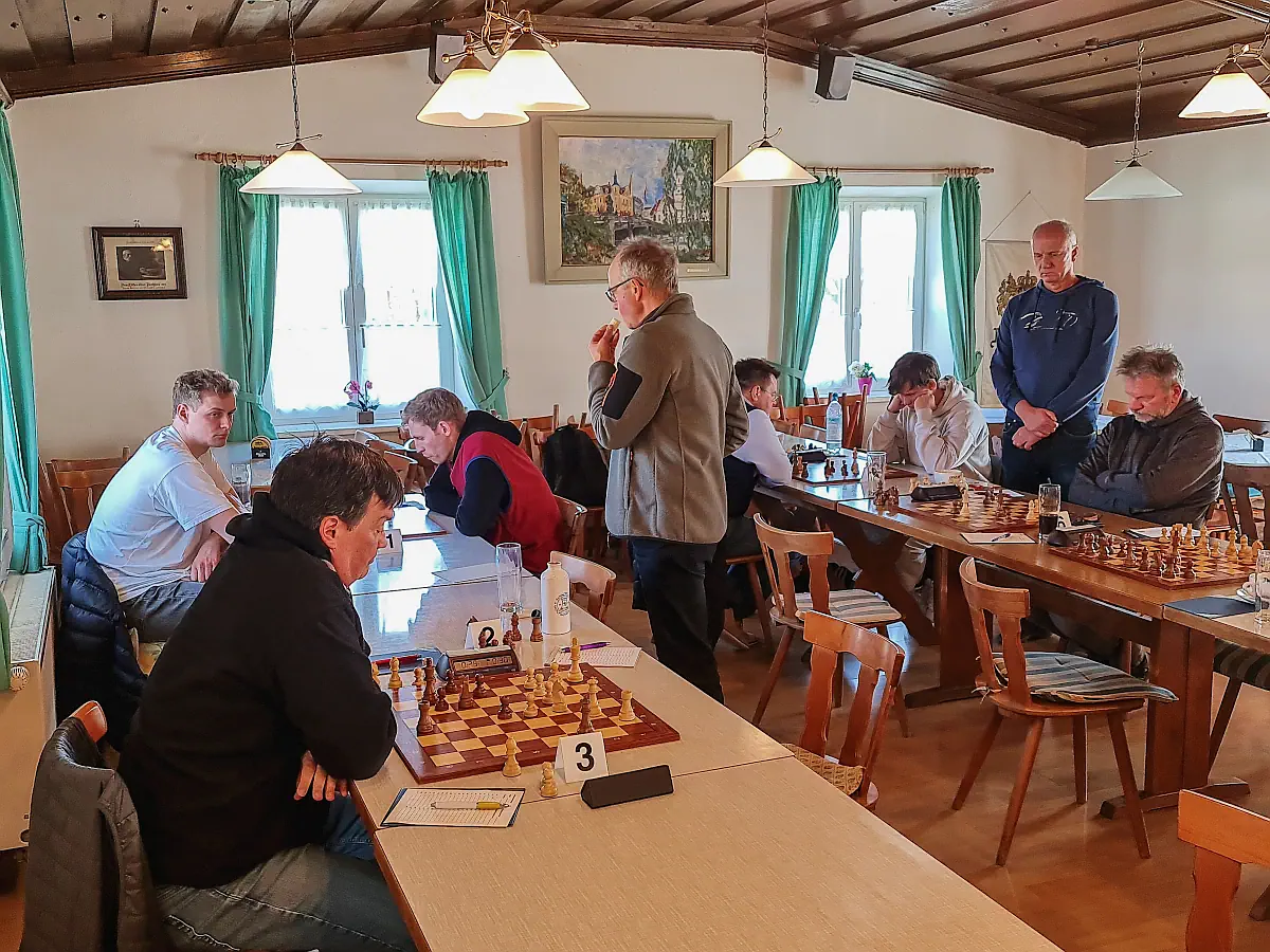So auch die Schachsaison 2024/25 bei uns dahoam im Schachkreis Zugspitze: kaum im letzten Oktober begonnen, es fühlt sich noch an wie (ganz) knapp gestern, war heute mit der 9. Runde in der Zugspitzliga schon das Saisonfinale für unsere erste Mannschaft. Zum Abschluß mußten wir noch einmal auswärts ran an die Bretter, und zwar ging es zu den Schachfreunden vom TuS Fürstenfeldbruck, die uns in ihrem sehr schönen Spiellokal empfingen, dem Wirtshaus Auf der Lände, direkt an der Amper gelegen und mit einem sehr schönen Biergarten ausgestattet, der auch außerhalb der Schachsaison sicherlich einen Besuch wert ist. 😉
