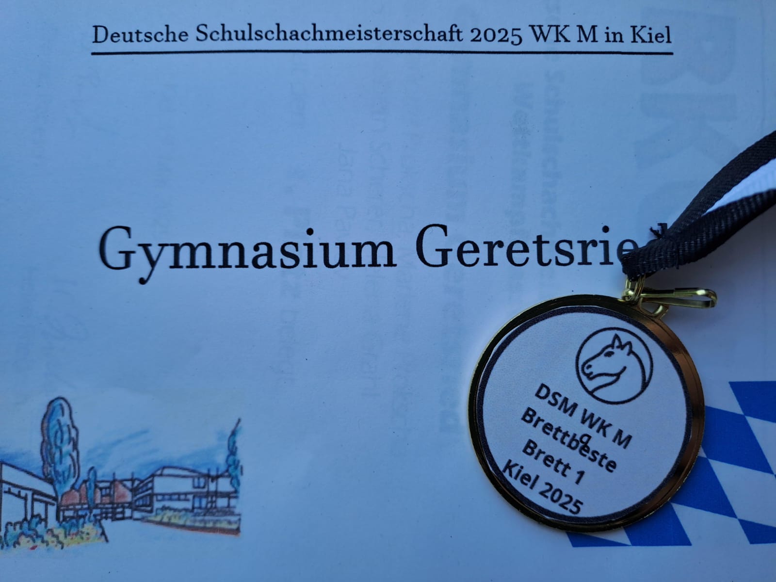 Bei den Deutschen Schulschach(mannschafts)meisterschaften für U21 Schülerinnen in Kiel trat auch das Gymnasium Geretsried, vertreten durch Charlotte Prokscha, Marlene Prokscha, Elisabeth Scherer, Helena Grahl und Jana Pavlov an. Vor allem die Topleistungen von Charlotte (mit dem Brettpreis für Brett 1!) und Marlene an den beiden ersten Brettern trugen erheblich zum tollen 8. Platz (von 20) bei. Herzlichen Glückwunsch allen jungen Damen!